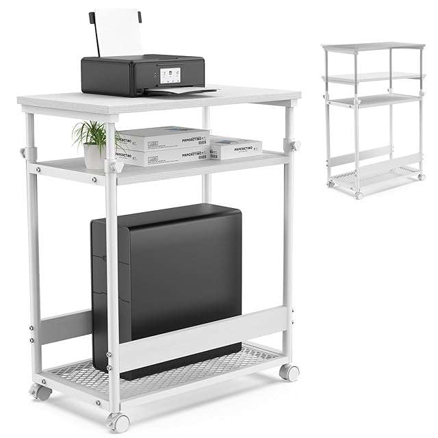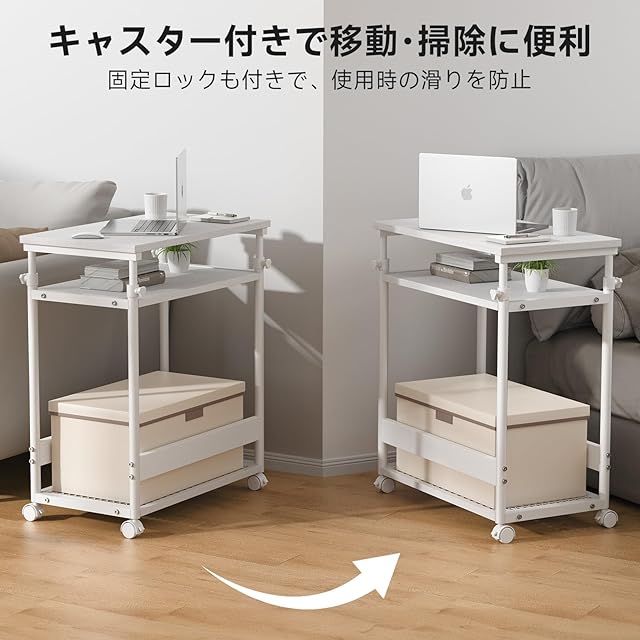 DOMICON パソコンラック pcワゴン 昇降式 幅62×奥行36×高さ68~96cm サイドワゴン パソコンワゴン サイドデスク プリンター台 pc置き台 収納棚 オフィス収納 袖机 キャスター付き (2. 白)