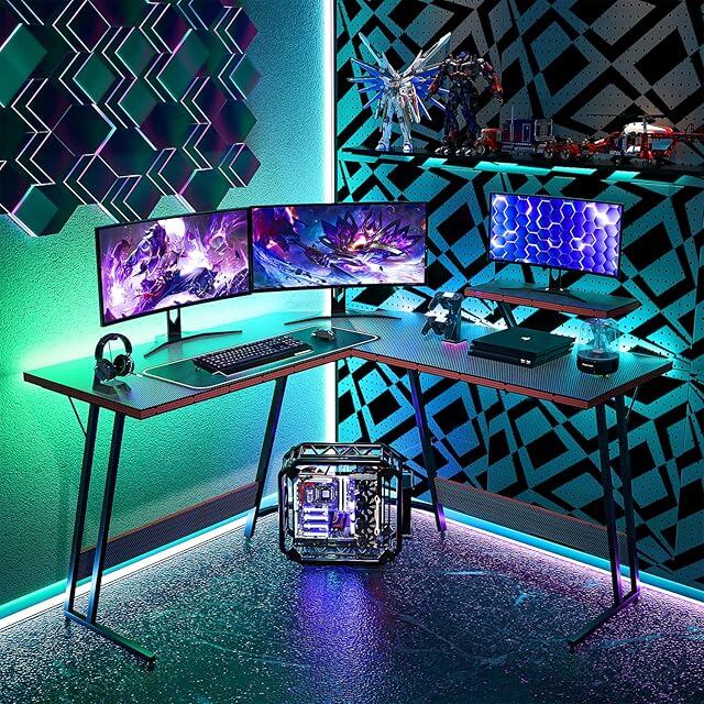 「省スペースのL字デスク」ほぼL字のデザインで、部屋の隅に置きやすく、空間を限界まで活用できます。それにL字のデザインで、2つの机として使うこともできます。広いL字天板でにゲーム設備及び色んな必要ものを置いてでも、何の混雑も感じません。L字机下の大空間も足が自由に伸びて縛られるような感じがなく、より快適な環境を提供してくれます。
