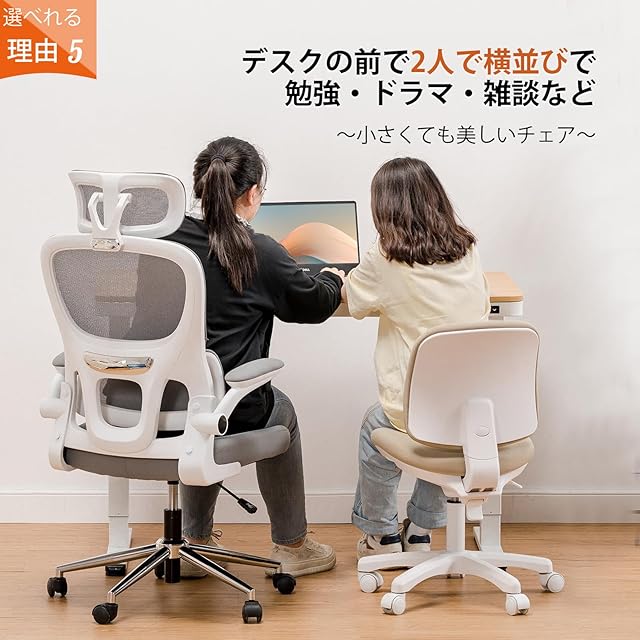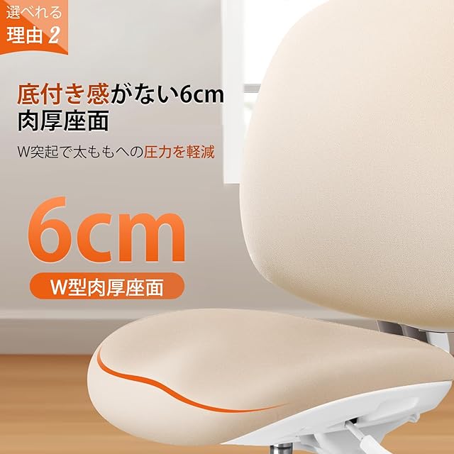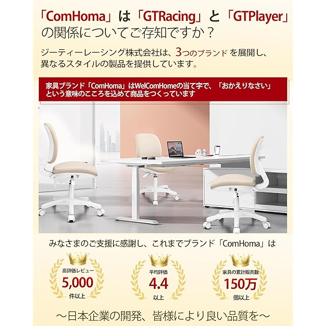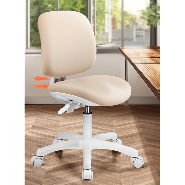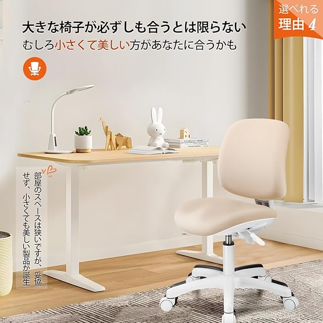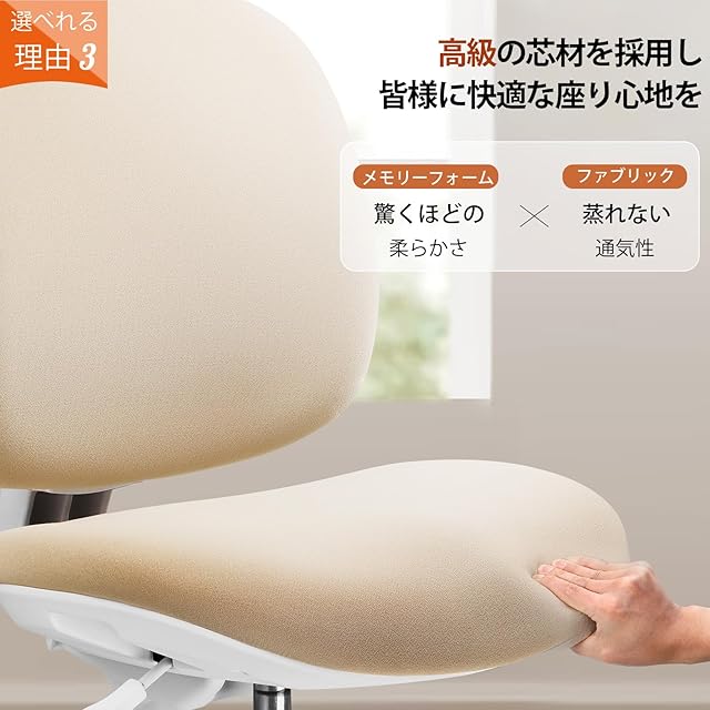 ComHoma デスクチェア オフィスチェア 背もたれの前後調整 小型チェア 在宅勤務 疲れない アームレス ファブリックの座面 メモリーフォーム内蔵 可愛いデザイン 人間工学 腰痛対策 省スペース 腰が痛くならない テレワーク対応 快適な座り心地 360度回転 CH311-Beige