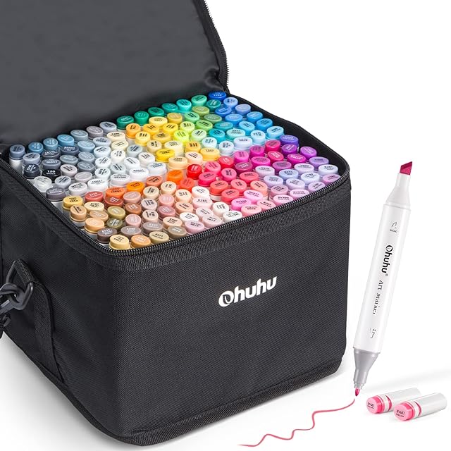 Ohuhu イラストマーカー 160色161本 太細両端 プロ愛用 マーカーペン イラスト アルコール カラー コミック用 ブレンダーペン 画材セット Oahuシリーズ