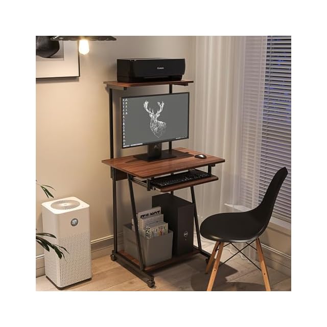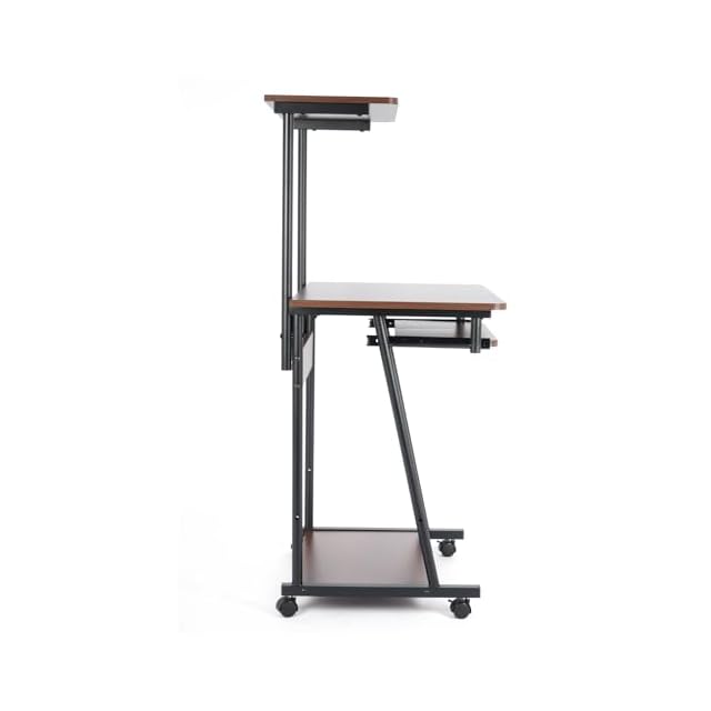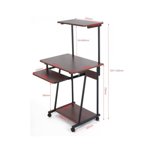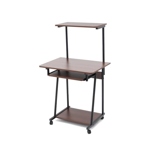 uyoyous 机 オフィス PCデスク パソコンデスク 昇降デスクスライドキーボードスライダー 収納ラック付き 奥行45 x 幅70 x 高さ133cm パソコン ワークデスク 組立品 木製 可動棚 キャスター付 省スペース 木目調