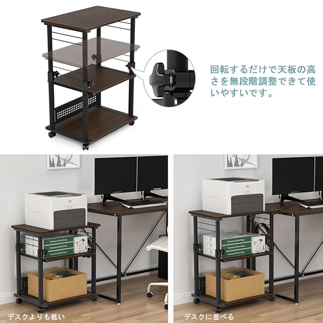 ✅【昇降式天板、高さが60-80cmで調整可能】こちらのプリンター台の高さは60-80cmで調整可能、昇降式できる天板は、テーブルとしても活用可能です。メインデスクと高さを揃えて並べれば作業スペースの拡張にも活用できます。