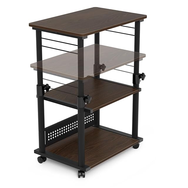 プリンター台 昇降式 DEWEL プリンターラック キャスター付き 3段 プリンターワゴン プリンターカート サイドワゴン 木製 プリンター収納 高強度のメラミン加工 オフィス 家庭用 幅60×奥行40×高さ64-84cm (XYGH5017)