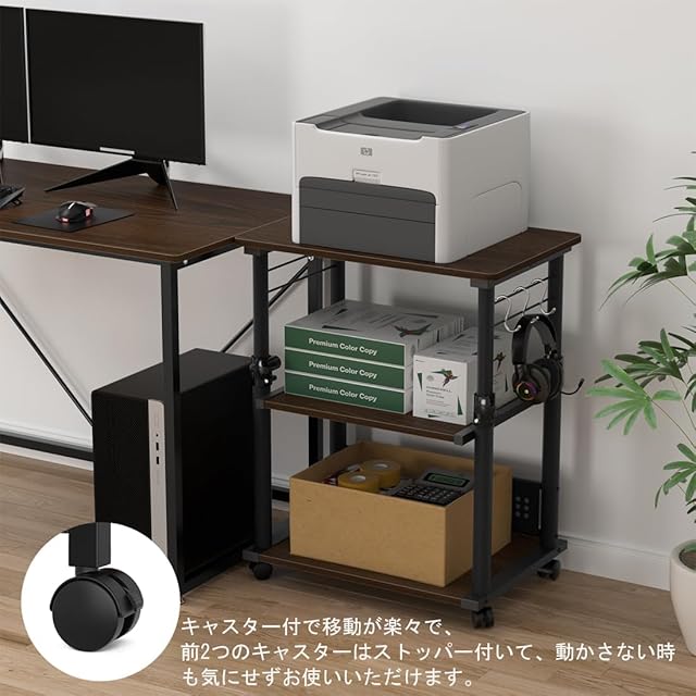 ✅【自由に出し入れできるスライド底板】プリンター台の下棚板はスライド式で、引き出しやすいスライド底板を採用しました。消耗品の出し入れや、プリンタのメンテナンスに便利です。