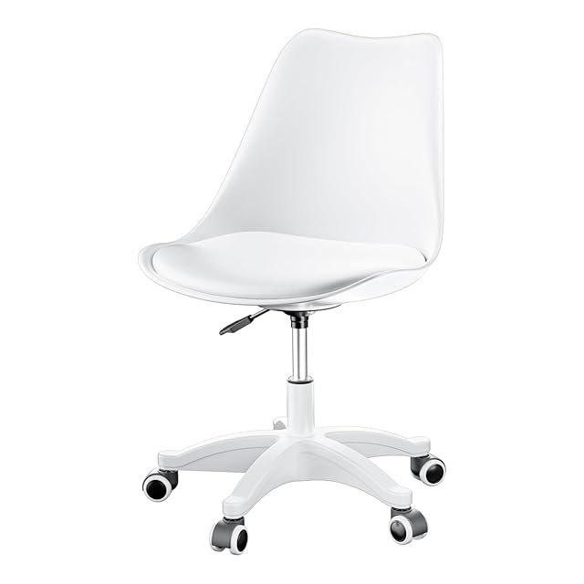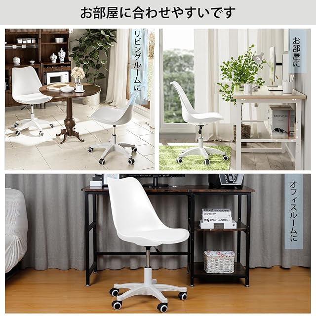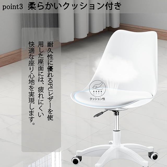 DEWEL オフィスチェア デスクチェア 360度回転 クッション付き 昇降機能 パソコンチェア 椅子 チェア 事務椅子 在宅勤務 テレワーク対応 勉強 疲れない 高さ72-82cm 作業 学習 (White)