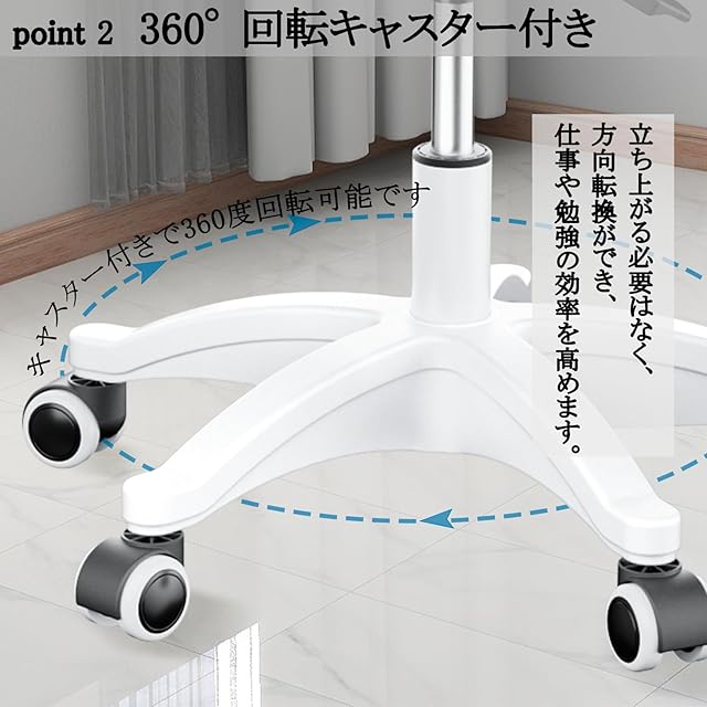 【360度回転可能】キャスター付きなので、オフィスチェアが360°回転可能です。立たずに方向転換ができ、仕事や勉強の効率がアップします。