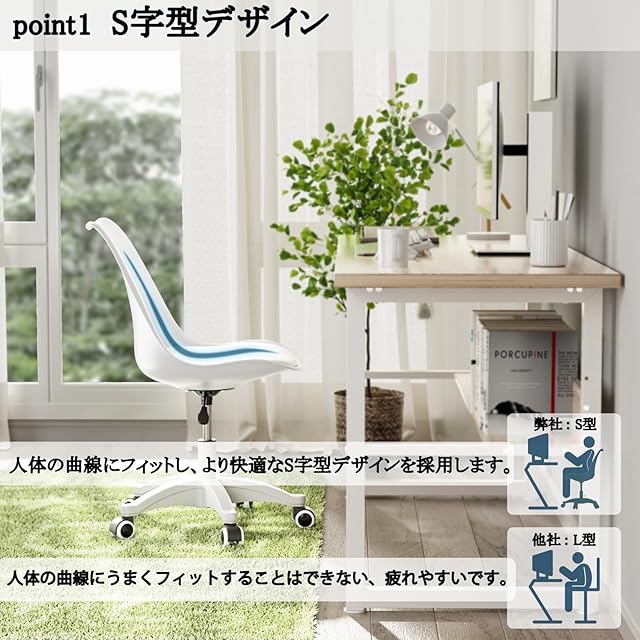 【人間工学に基づいてデザイン】身体の曲線にフィットし、S字型の背もたれ、背の痛みを緩和し、ウエストにフィットし、背骨を保護、座り心地がとても良いです。