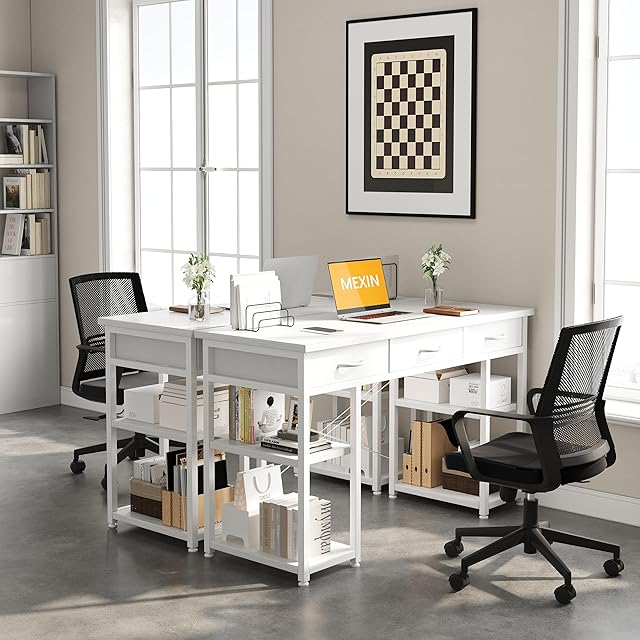Mexin 120CMデスク 机 pcデスク 幅120*奥行40*高78cm パソコンデスク 引き出し3杯&収納棚2枚付き キッズデスク ホームオフィスデスク 学習机 省スペース(ホワイト)