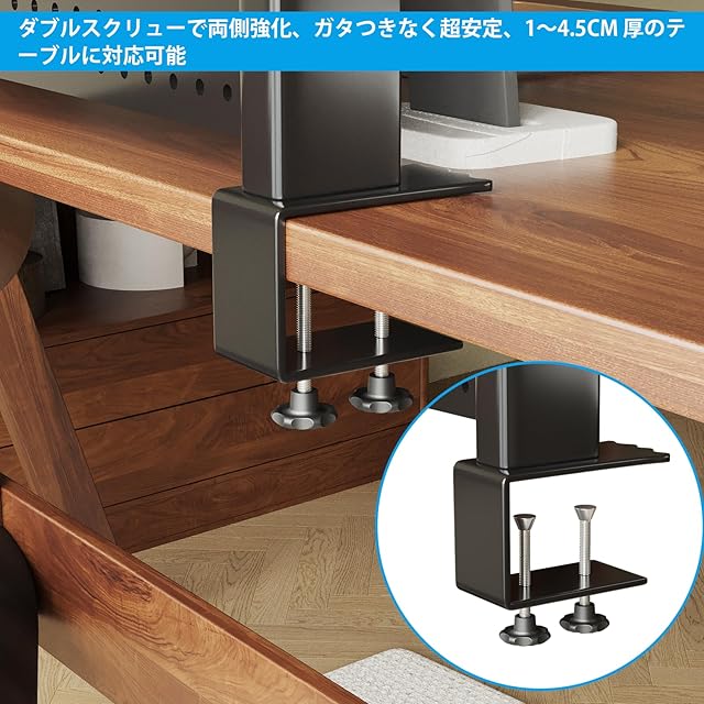 【設置が簡単】取り付けはネジ止めだけ!ネジを簡単に締めるだけで、1~4.5cm の厚さのあらゆる机に取り付けられます。専用の毛布パッドは、机の表面を傷つけず、滑り止めの役割も果たします。初心者でも、短時間で設置できます。