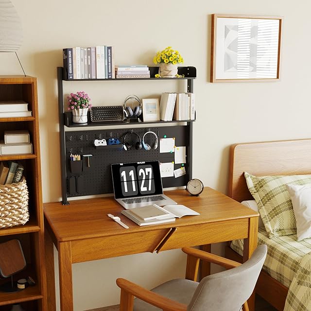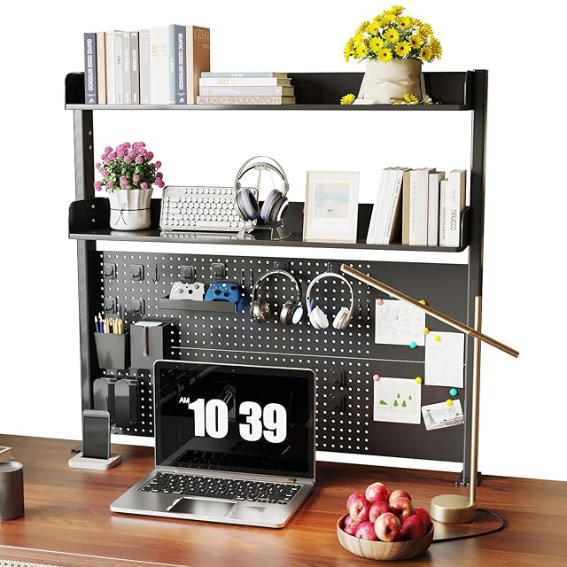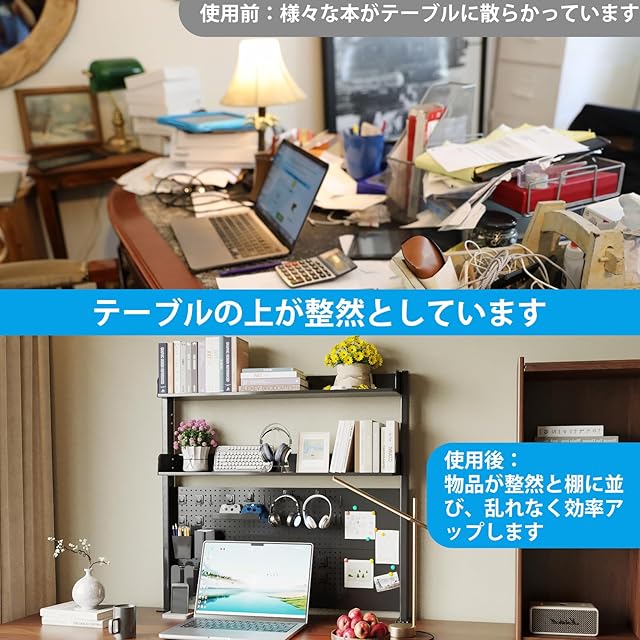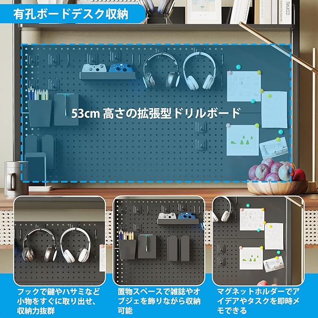 【大容量&収納力抜群】53cm の高さのドリルボードは、無限の収納可能性を提供します。付属のハンガーを使えば、鍵やハサミなどの小物を見やすく整理できます。また、置物や雑誌を飾ることで、デスクに個性的な雰囲気を演出できます。各層の広いスペースには、ノートブックや書類、文具などを多く収納でき、必要なものがすぐに手に入ります。