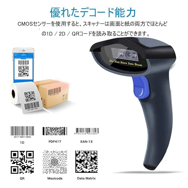 【高速読み取り機能】Netum W9Sバーコードスキャナーには、高度な1280H×720Vピクセル(1.0M)CMOSセンサーが搭載されています。 1Dバーコード 、2Dバーコード、QRバーコード、Data Matrix、Maxicode、 Aztec codeなどのバーコードを簡単にスキャンすることができます。 复ラベル、紙、携帯電話、コンピュータディスプレイ上のバーコードをスキャンすることが適用します。このスキャナは、コード内の日本語を認識して出力できます。