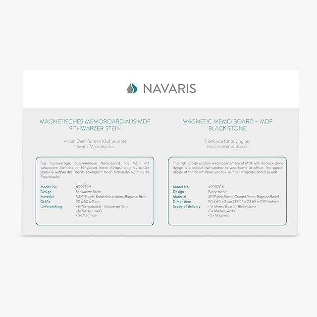Navaris マグネットボード ホワイトボード 壁掛け 黒板ボード - メモボード デスクパネル ディスプレイボード ペン付き 90x60cm ストーンデザイン