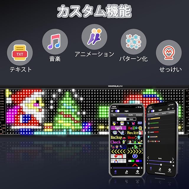【移動アプリで簡単操作 - 創造力の限界を広げる!】このLED電光掲示板ボードは、専用のモバイルアプリを使って簡単に操作することができます。文字や絵、音楽のリズム、明るさの調整など、さまざまな機能を持っています。これにより、お好きなメッセージやデザインを作成することができます。独自のメッセージを表示して広告効果を高めたり、特別なイベントや季節に合わせたデザインを施したりすることができます。創造力を発揮して、魅力的なディスプレイを作り上げましょう。