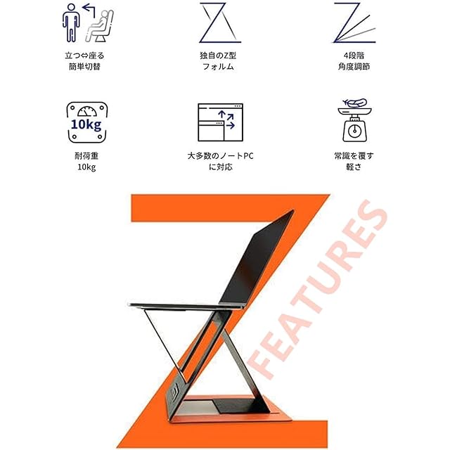 【スタンディングに対応】一日中同じ姿勢で仕事をすると、腰や首が悲鳴を上げてきますよね。MOFT Zでは座り姿勢で3パターン+スタンディングモードで合計4パターンの調節が可能です。MOFT Zを利用することで立つ⇔座るの切り替えを簡単にできるので、あなたのオフィス環境に新たなトレンドを巻き起こします。MOFT Zを高さ25㎝のスタンディングモードにすることで、立ち姿勢でのノートPC操作にちょうどいい快適な高さになります!
