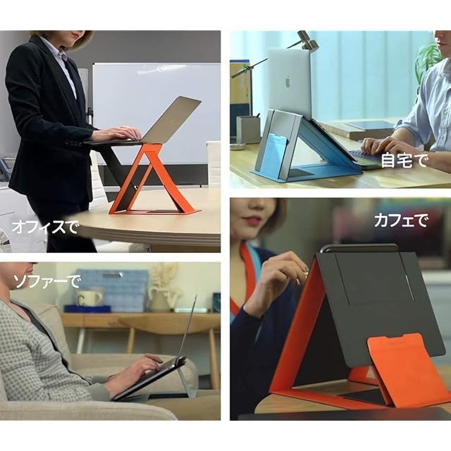 【4段階の角度調節】スタンディングモード、25度、45度、60度の4段階の角度調節可能!ノートPCスタンドの決定版!折り紙からヒントを得たMOFT Zはわずか3秒で楽しく設置でき、着席作業モードからスタンディングワークモードへの切り替えもスマート!より多くの利用シーンをカバーできます。