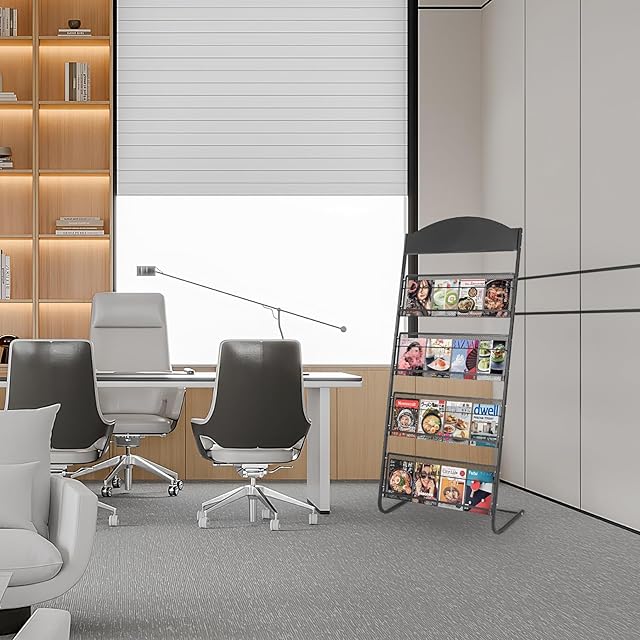 【傾斜構造とグリッドデザイン】マガジンラックは、ユニークな収納層デザイン、4層収納、大容量、完璧な傾斜角度、マガジン収納とアイテムディスプレイ、使いやすく、ファッショナブルで環境にやさしいです。