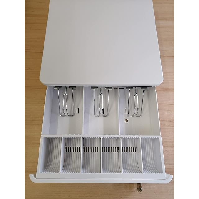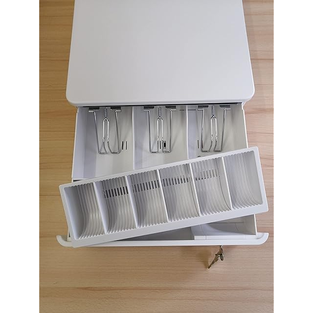 キャッシュトレーは紙幣3種、硬貨6種を入れることが可能なコンパクトドロアーです。また、仕切板は位置の調整も可能でトレーの幅や分割数を変えることが出来ます。