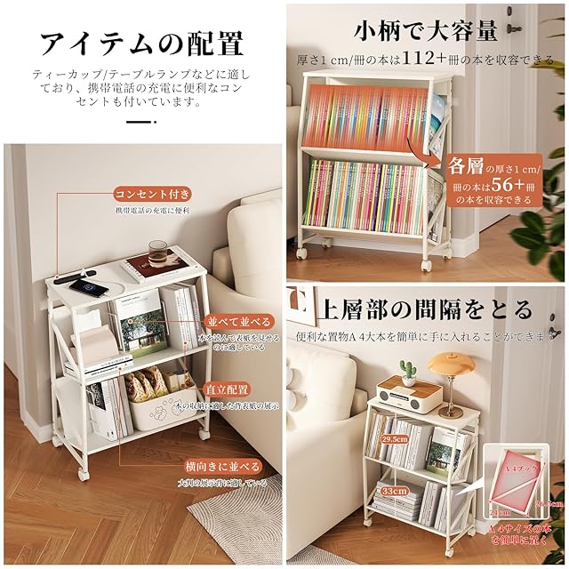 【大容量棚ファイルカート】このファイルカートはフレームと背骨が傾斜しており、傾斜したデザインにより本や書類を簡単に見ることができます。椅子に座ったままでも簡単に出し入れできます。 A4サイズの書類や書籍、DVDなども収納可能です。