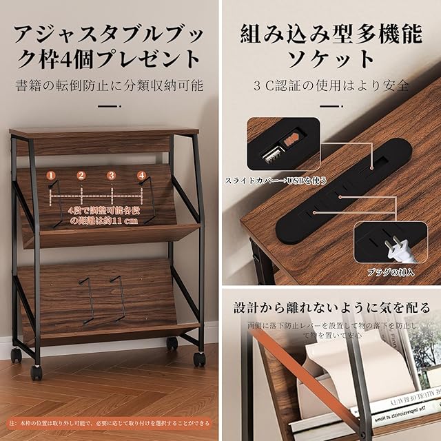 【自由に移動できる仕切り】取り外し可能な追加ブックエンド位置を4つ装備しており、必要に応じて自由に設置でき、左右の間隔を自由に調整できます。こうすれば本が倒れません。