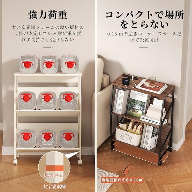 ファイルラック ファイ【コンセント付き書類カート】ホコリを防ぐ上棚付き。強力な耐荷重性があり、各棚は10kgに耐えることができ、重い物を運ぶのに適しています。上部には電源ソケットがあり、携帯電話やノートパソコンの充電に非常に便利です。上部には小型プリンターやFAX、装飾品、電気スタンドなどを置くことができます。ルワゴン 3段