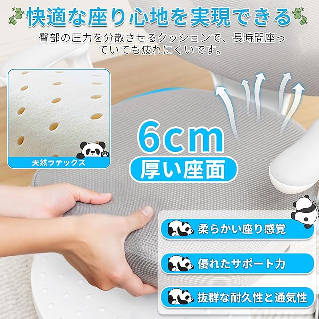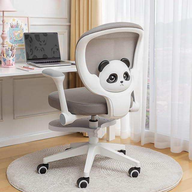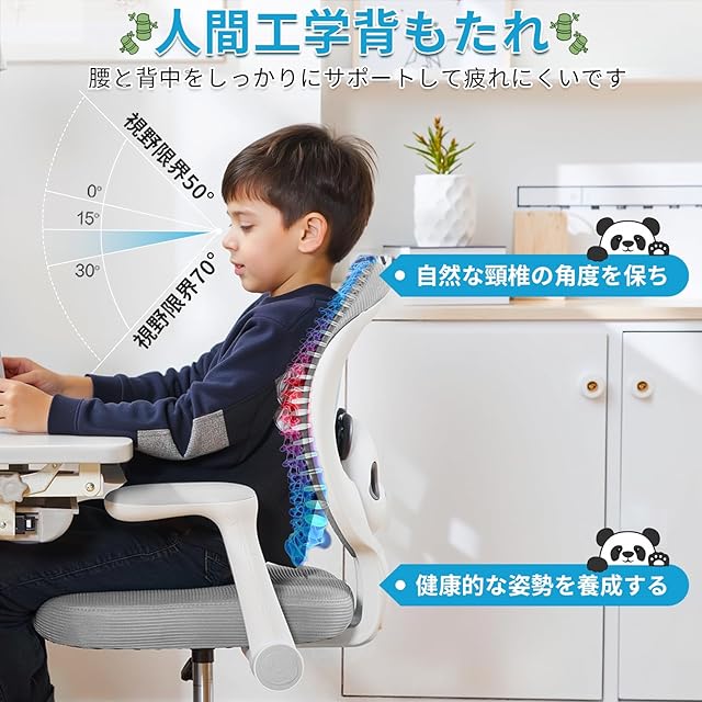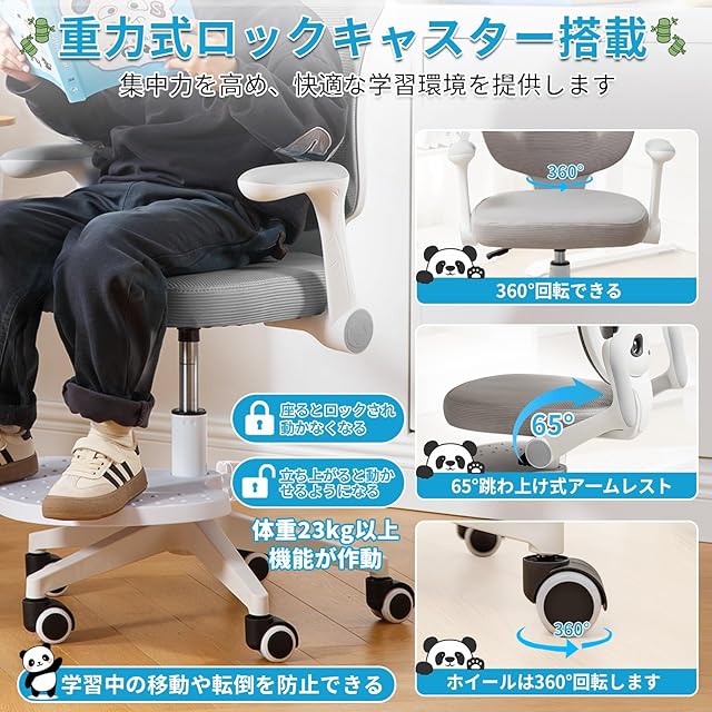 RELXSKY デスクチェア 子供用 学習椅子 勉強椅子 人間工学 65度跳ね上げ式アームレスト 10cm昇降 360°回転 フットレスト付き 学生用デスクチェア 疲れない 高反発座面 通気メッシュ 子供/中/高校生/小柄な大人用 最大荷重150kg 学習チェア 重力式ロックキャスター 高級チェア 勉強/事務/家庭用 勉強 椅子 かわいい パンダの森の物語 (グレー)