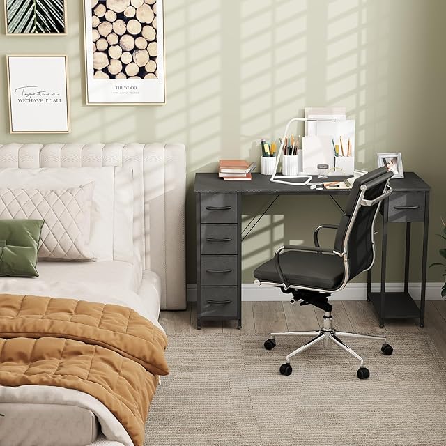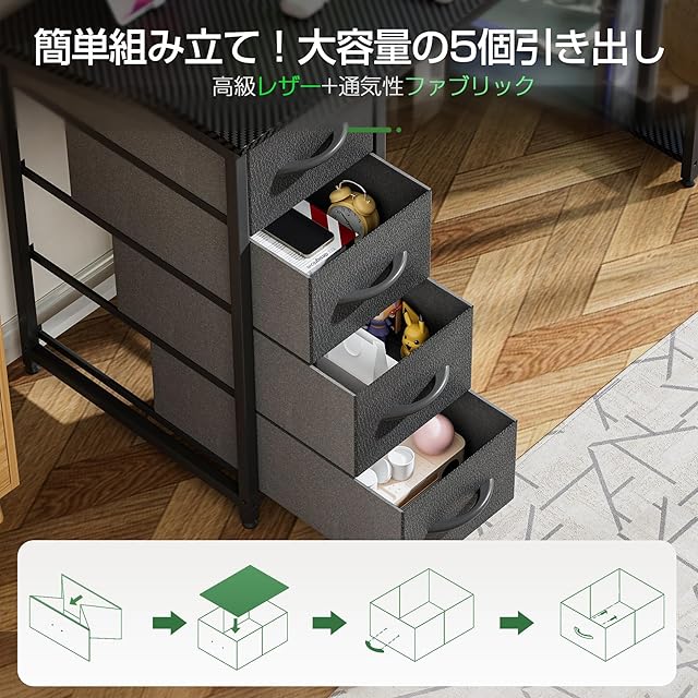 【取り外し可能な引出し、収納便利】このpcデスクは5つの取り外し可能な引き出しが付いており、書類、文房具、化粧品、工具などを簡単に整理でき、散らかったデスクトップを解消!物の取り出しもスムーズに行えます。さらに、長方形のスタンダードタイプと組み合わせて、どんなインテリアにも調和し、書斎、オフィス、寝室に最適。