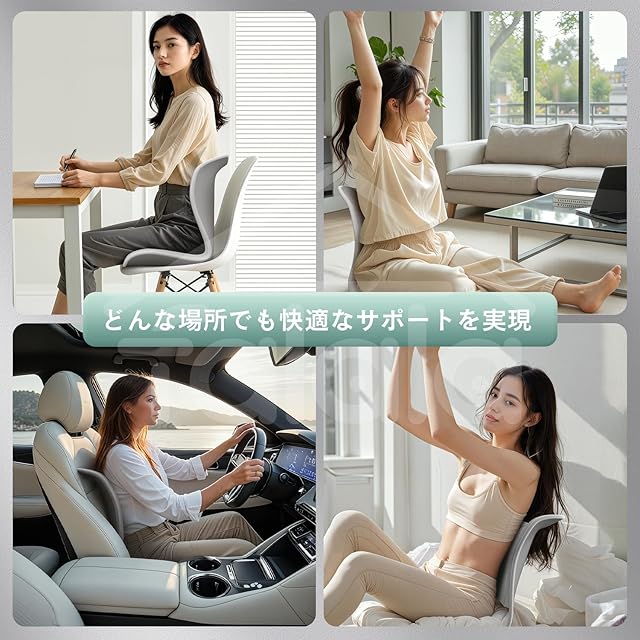 【置くだけ簡単&おしゃれなデザイン】組み立て不要、届いたらすぐに使えます。姿勢改善 クッションとして、椅子の上に置くだけで簡単に快適な姿勢サポートを体験できます。2色のカラーバリエーションで、お部屋のインテリアやオフィスにも馴染みやすいデザイン。クッション ゲーミングチェアやデスクチェアクッションとしてだけでなく、どんな空間にも調和するスタイリッシュなデザインです。