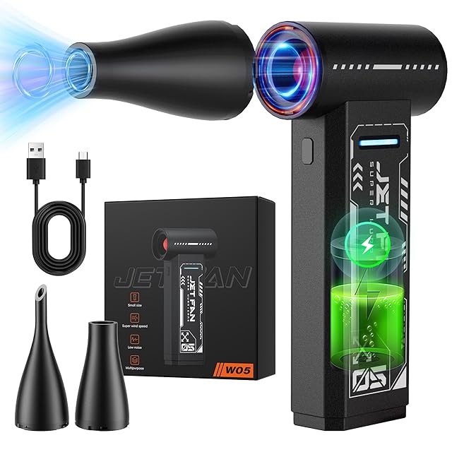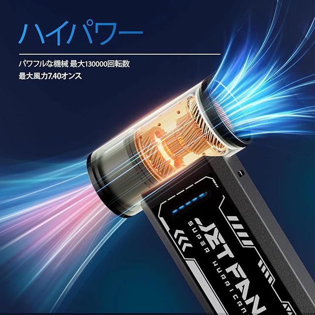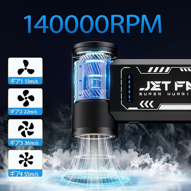 強力なターボファン:ターボジェットファンのモーター最高速度140,000 rpm。4段階風力設定、調整可能な空気流量を持つミニジェットファン、風速範囲は13m/sから55m/s(超大型台風≥51.0 m/s)。さまざまな清掃ニーズに応じてカスタマイズ可能で、隙間に隠れた汚れを簡単に除去できます。
