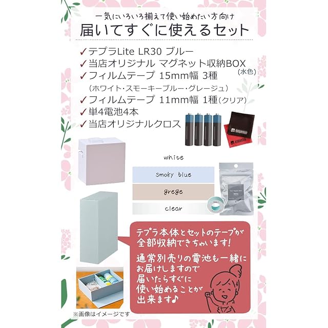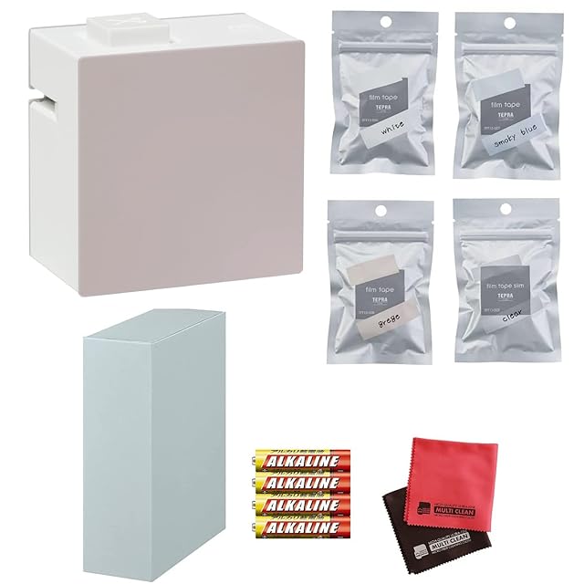 【キングジム テプラ Lite LR30HL リラージュ 8点セット】 ◆KINGJIM TEPRA Lite LR30 リラージュ 本体 ◆テプラLiteフィルムテープ 4本 ◆マグネット収納ボックス ◆単4電池4本 ◆クロス