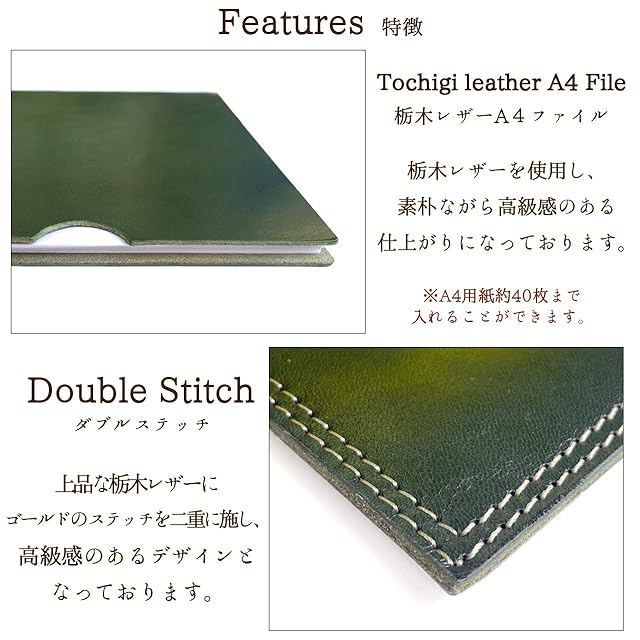 レザーファイル A4 書類入れ ビジネスグッズ 収納 シンプル A4サイズ ファイル ステーショナリー 資料ケース 文具 A4ファイル レザー 革 こだわり親父の本革 グリーン