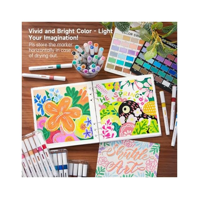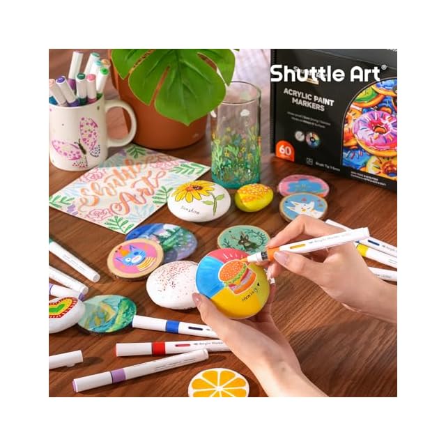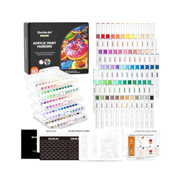 Shuttle Art アクリルマーカー 60色セット 直液式 ブラシペン先 水性 ペイントマーカー カラーペン 防水 速乾 耐水 耐光 アクリル絵具 石・木材・金属・プラ板・ガラス・陶器に書ける 収納ケース付き ハンドメイド 手作り DIY クラフト 子供用 学校 絵画教室 プレゼント
