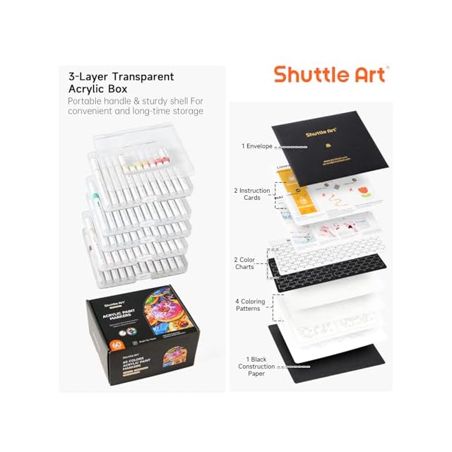 【様々な用途】紙はもちろん、プラ板、ブラックボード、チェキ、マグカップ、キャンバス、陶器、ガラス、石や貝殻など様々な素材にお絵描き、ハロウィンやクリスマスのデコレーション、書道のレタリングや誕生日プレゼントなどにも最適です。ポータブルな3層の透明アクリルボックスにアップグレードして、 簡単に取り出して収納でき、アートプロジェクトや工作に幅広くご使用いただけます。