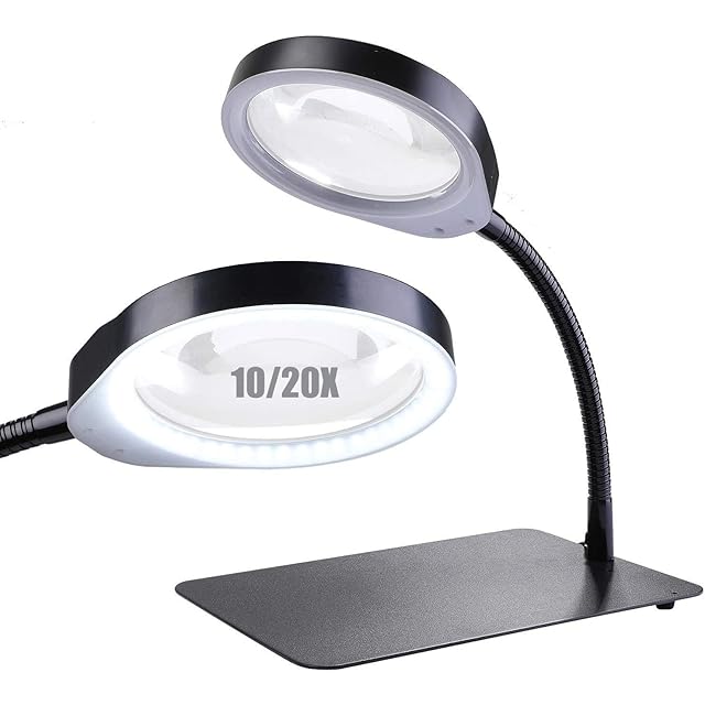 QaaJaa スタンド 拡大鏡 ライト ルーペ 卓上 ライト付き 10/20倍の倍率拡大鏡を搭載 折りたたみ式 角度調整可能 無段階調光 USB給電 目に優しい 多用途 (10/20X)