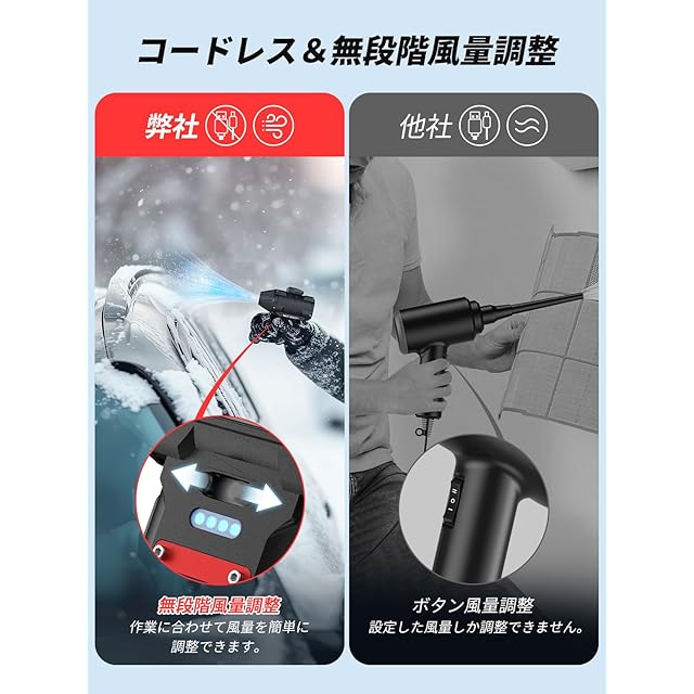 【多用途&コンパクト】電動エアダスターはPC掃除、車用掃除などに適用します。そして、258gの重量とコードレスのデザインで、持ち運びに便利なりまして、制限なくアウトドアにも自由に利用できます。キーボードの隙間、エアコン、花粉、車内、ブラインド、浮き輪の空気入れ、洗車後の水を飛ばしなどの場所にも適用です。