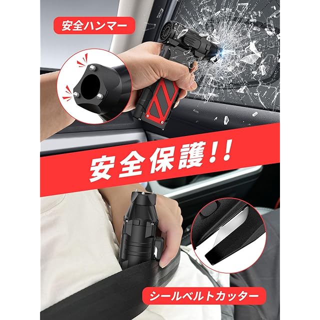【安全保護&緊急対応】頑丈な安全ハンマーと鋭いシートベルトカッターが備えていて、緊急時にガラスを割れて、シールベルトを瞬間に切ることができます。電動エアダスターとしてホコリ掃除するだけでなく、緊急脱出用としても使えますので、アウトドアにオススメです。