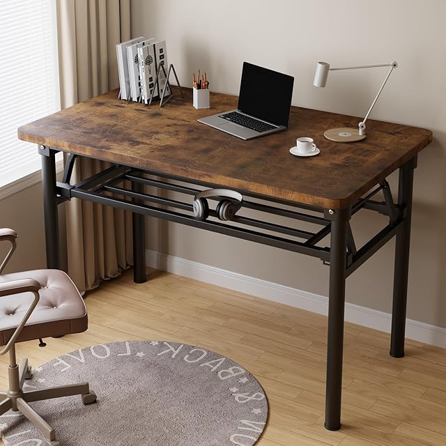 PQNLXLN 折りたたみ デスク パソコンデスク PC机 完成品 組立不要 幅80CM 幅100cm 奥行50cm シンプル ワークデスク 棚付き テーブル 会議テーブル pc 作業台 机 勉強机 丸い足