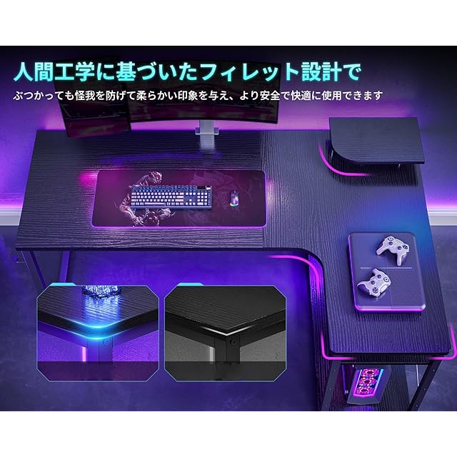 【商品仕様】パソコンデスクとしてはもちろん、ゲーミングデスクとしても使用できるおしゃれなL字デスク。◆本体サイズ:約幅90×奥行75×高さ74CM ◆本体重量:約12KG ◆お客様組立て品です。◆万が一ご購入した商品に初期不良が発生した場合、いつでもお気軽にお問い合わせください。