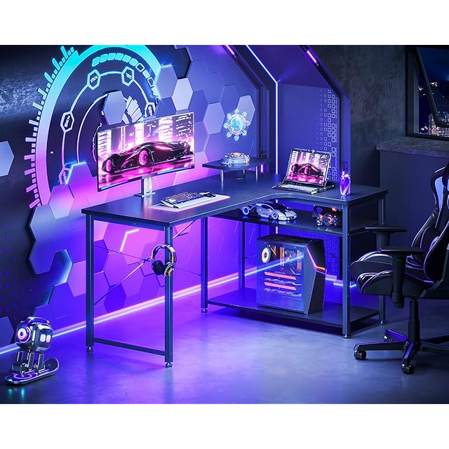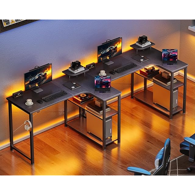 【ゲームと仕事両立】L字ゲーミングデスクは実用性が高く、ゲームプレイ、在宅勤務、勉強机、作業机など様々なシーンで大活躍!モニター台を利用して目線をあげることで、作業時の姿勢を改善し、テレワークが快適になり、作業効率も格段に上がります。
