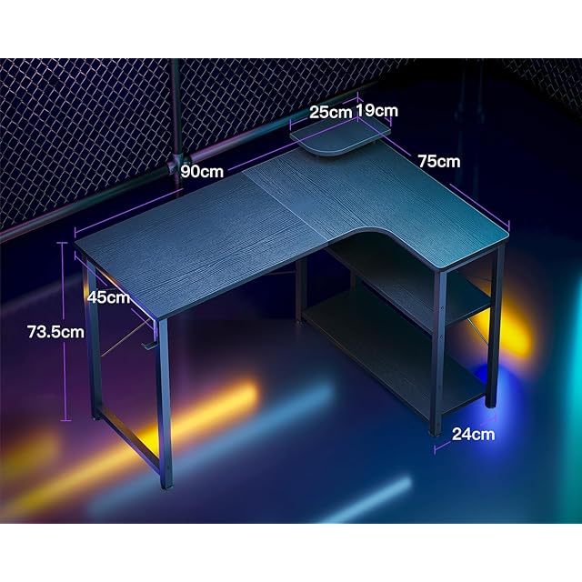 AODK パソコンデスク L字 ゲーミングデスク 幅90 ワーク l字デスク 机 pcデスク desk 棚付き 勉強机 オフィス 在宅勤務 桌子 作業机 組立簡単 右棚 ブラック