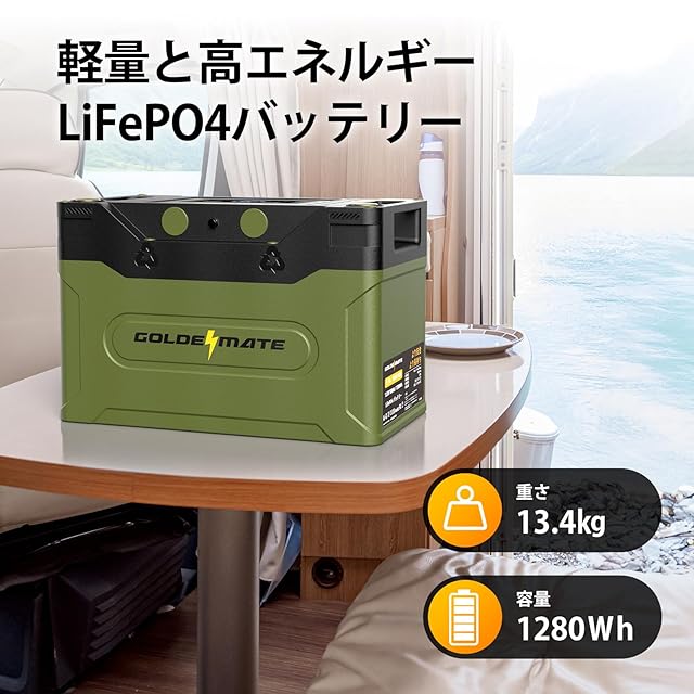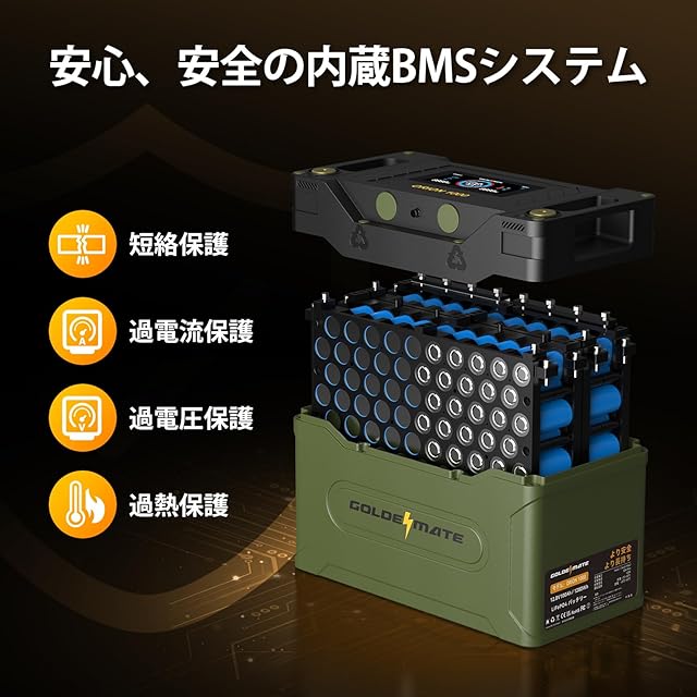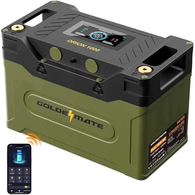 GOLDENMATE 12.8V 100Ah リン酸鉄リチウムイオンバッテリー LiFePO4バッテリー 1280Wh IP67防水 BMS内蔵 スマホと接続可能 5000以上のサイクル 液晶ディスプレイ付 キャンピングカー 電動車椅子 車中泊 サブバッテリー 非常用電源 Orion 1000