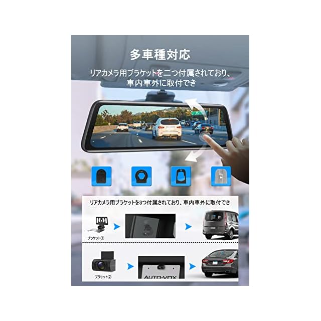 AUTO-VOX 最新 ドライブレコーダー ミラー型 【多車種対応】 純正ミラー交換 ドラレコ WDR 4種類のブラケット GPS デジタルインナーミラー 広角レンズ 電波干渉無し 超暗視 駐車監視 駐車支援 衝撃録画 高低温度対策 タッチパネル 車内の空間解放 2分割画面 日本語説明書