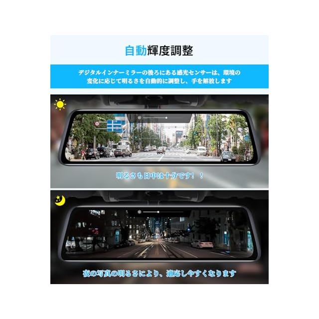 【ミラー型ドライブレコーダーの革新型&車内の空間が解放】 被せるタイプではなく、純正ミラーと交換式のため、見た目がスッキリしています。配線は内側フロントガラスの上を這わせていますが、配線は1本しか出ていないので超スッキリです!重みによるモニターの下向きや、暑さでのズレもなく、振動による揺れも少ないのが特徴です。バンド仕様や吸盤タイプのミラー型ドライブレコーダーで発生する「本体が剥がれて落下してしまう」などのトラブルがなく、より安全な運転が実現できます。前方カメラと本体が一体化され、装着も簡単で、高画質かつ高級感があります。また、9.35インチで元純正ミラーのサイズとほぼ同じなので、交換後も圧迫感がなく、サンバイザーとも干渉しない点が魅力です。