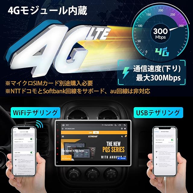 【☆SIMカード挿入可能+USB/ WIFIテザリングも対応】★XTRONS TIX125L カーナビ はWiFi/4Gモジュール内蔵技術を採用します。いろいろな方法でネット環境を利用可能!WIFIテザリングとUSBテザリングもサポート可能で、カンタンにインターネットにアクセスできます。また、直接4G SIMカードを挿入して、ネット環境を作ることも可能です。Google mapやYouTubeなど様々のアプリをインストールでき、音楽や動画を手軽にお楽しめます。