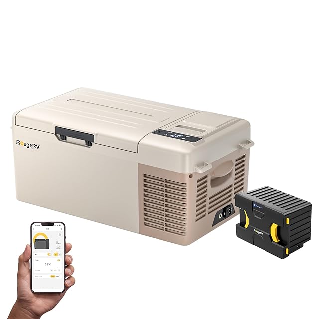 【173Whバッテリー付き&アプリ対応】BougeRV ポータブル冷蔵庫 車載冷蔵冷凍庫 小型れいぞうこ 15L -20℃~20℃ 急速冷凍 3WAY電源 DC12V/24V AC100Vミニ冷蔵庫 軽量 LEDパネル 静音 小容量 省スペース 車載家庭両用AC・DCコード付き トラック 車中泊 キャンプ アウトドア 釣り アプリ対応 保冷ボックス 温度調節可 CLB