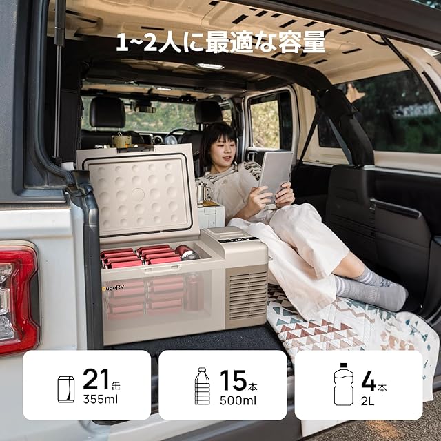 【15.8L小容量&抜群の携帯性】コンパクトながら15.8Lの容量を実現!355mlの缶飲料なら約21本、500mlのペットボトルなら約15本、2Lのペットボトルなら4本収納可能です。本体サイズは幅約61.0cm×奥行約32.0cm×高さ約26.2cm、重量はわずか8.6kgと軽量設計。さらに、埋め込み式ハンドルを採用しており、持ち運びが簡単で収納時も省スペースを実現します。また、四点式固定スロットを搭載しているため、専用のロープや固定具を使えば車内での固定も簡単。悪路でも安定性を保ち、安全に使用できます。