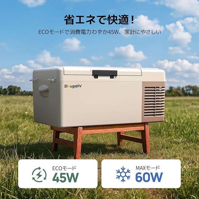 【LEDコントロールパネル&専用アプリで快適操作】直感的に操作可能なLEDコントロールパネルを搭載し、箱内温度の調整など各種設定をスムーズに行えます。また、USB充電ポートを一体化した設計により、スマートフォンやその他のデバイスの充電も簡単に対応可能です。さらに、BougeRVが自主開発した専用アプリを使用することで、最大10m離れた場所からリモートで温度調整が可能。冷蔵庫本体に近づいて操作する必要がなく、アウトドアや車中泊などの利用シーンでより快適かつ効率的に活用できます。
