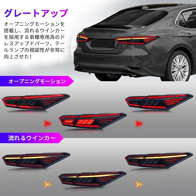 Archaic カムリ 70系 テールランプ 全LED 新型アルファード風 テールライト 流れるウインカー オープニングモーション搭載 左右4点セット スモーク Tail Lights for toyota Camry 2017年7月~up