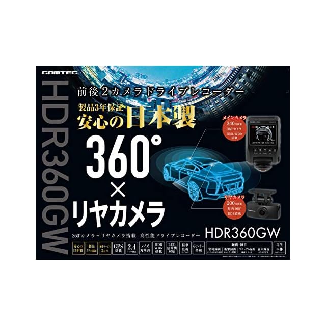 ドライブレコーダー国内最大手メーカーのコムテック社から、全方位録画可能な360°カメラに加えて、車両後方を確実に録画するリヤカメラを追加したモデル「HDR360GW」が登場。