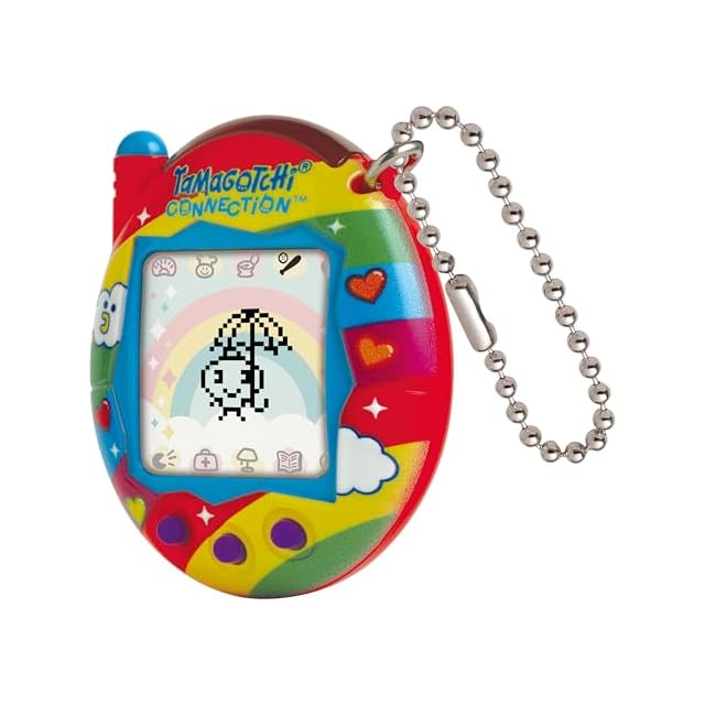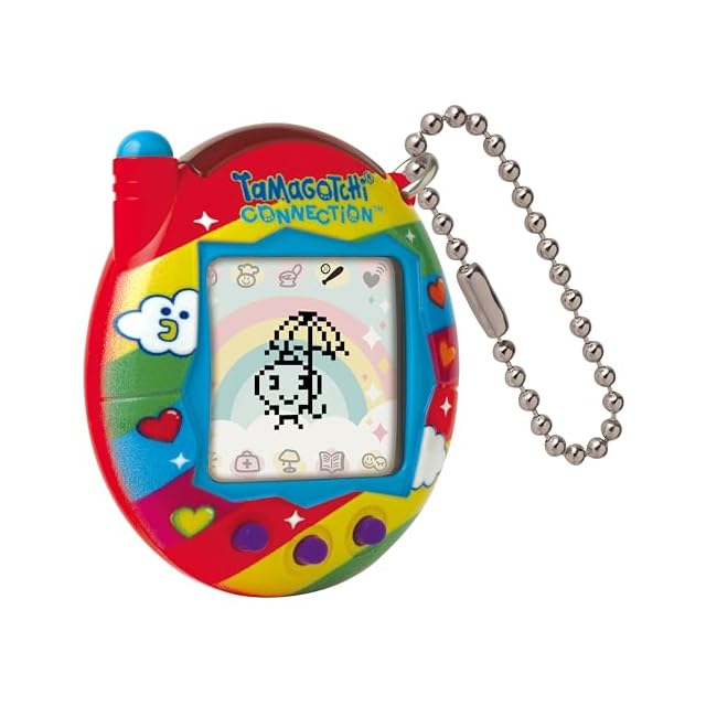コネクションプレイ付きのオリジナルのバーチャルリアリティペット。 明るい赤と虹色の空を彩る陽気な新デザイン。 キャラクターの傘のパスワードが含まれています。
