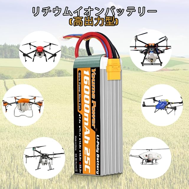 【商品名】Youme 6S Lipoバッテリーパック 22.2V 16000mah 25C xt90,素早く充電され、長いサイクル寿命(最低150時間)、最高356Wh / kgエネルギー密度